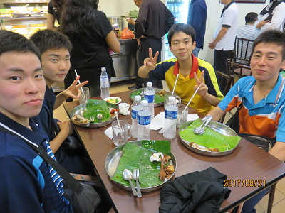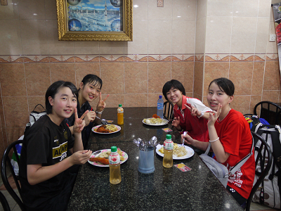 | 昼食は宿所の近くの食堂で食べることが多い、この生徒たちは米一粒残すことなく綺麗に食べる。 |