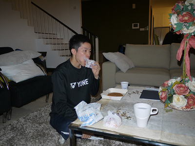 曽我部選手は100%のコンデションでないため、大事をとって先生が、練習を休ませてた。食欲旺盛。あすはまた練習に復帰する。 |
