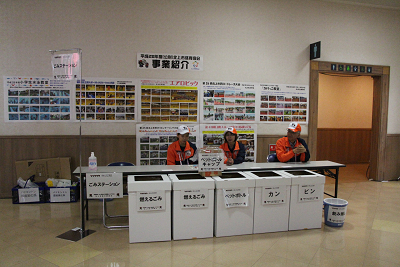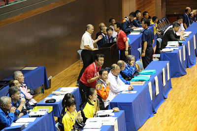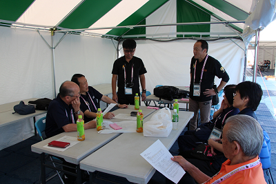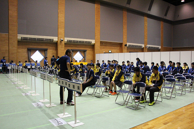 和歌山大会とは全く違うレイアウトだが、この会場は通路を広く取れるので、この方法がベストであろう。 |