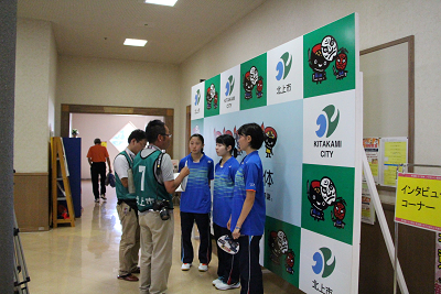 | 岩手の放送局の取材を受ける岩手県選手たち。 |