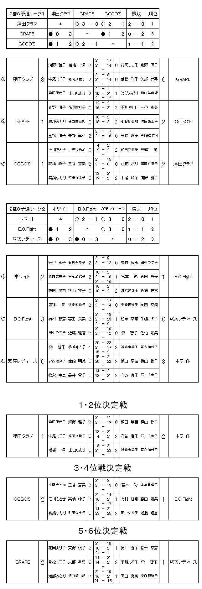 2部C 優勝:ホワイト