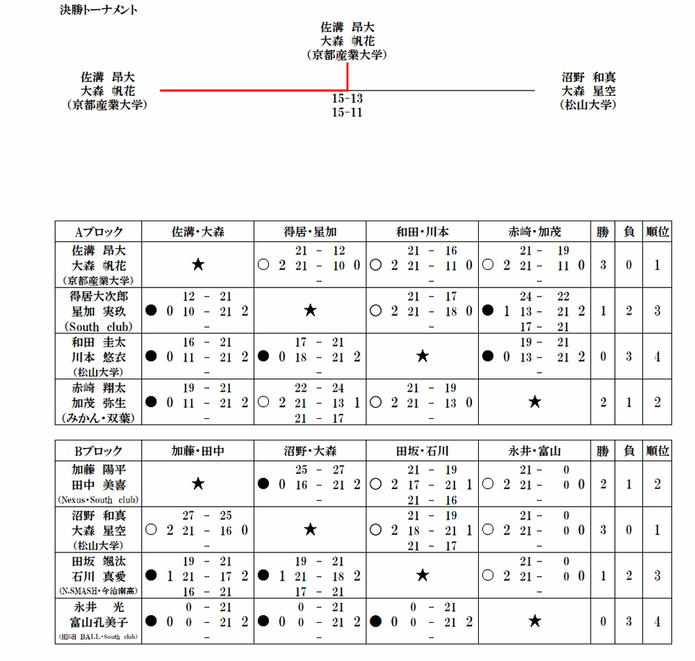 優勝:佐溝・大森組(京都産業大学)